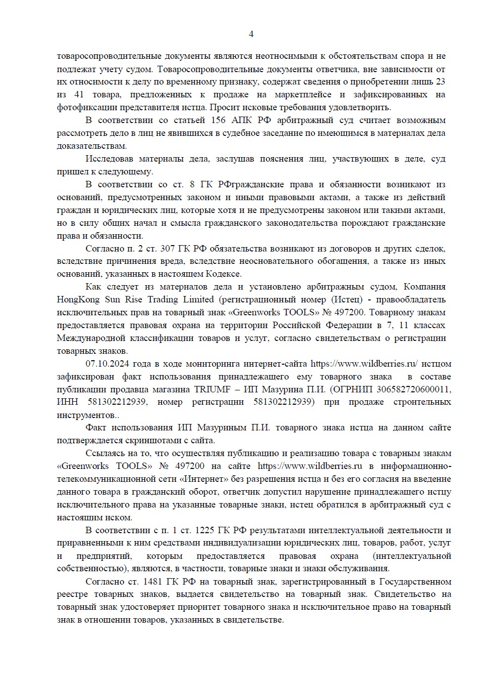 Иск подала гонконгская компания HongKong Sun Rise Trading Limited к пензенскому предпринимателю Мазурину П.И. В ходе рассмотрения дела суд по ходатайству ответчика перешёл от упрощённого производства к общим правилам искового производства и привлёк к участию двух третьих лиц: поставщика ответчика (ИП Рыгалова С.В.) и официального представителя бренда в России (ООО «Гринворкстулс Евразия»).