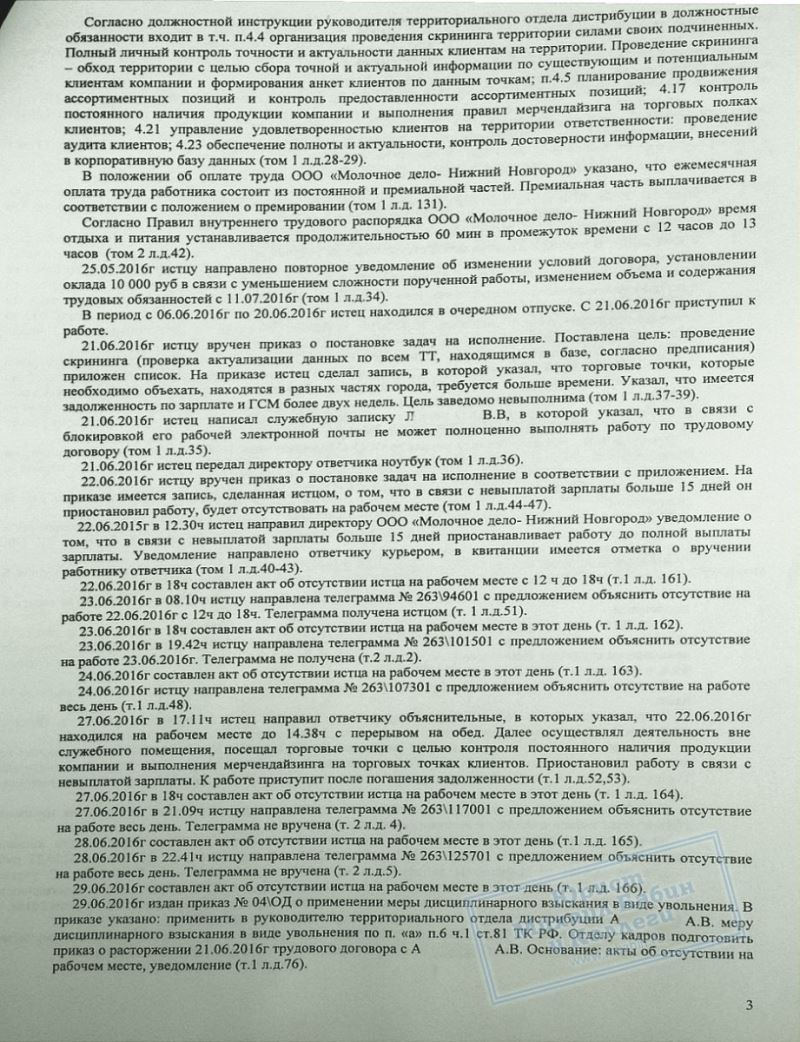 После завершения судебного заседания руководителя организации вызывали для дачи объяснений в прокуратуру. А.А. был восстановлен на прежнем месте работы и продолжает работать там на данный момент. За время вынужденного прогула он получил от ООО "МД НН" 103 000 рублей, а также 7,5 тысяч иных платежей.