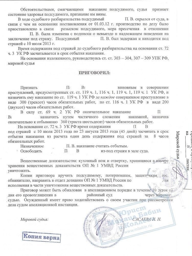 В августе 2013 года руководитель нашей компании проводил защиту по уголовному делу П.В., который неоднократно являлся инициатором конфликтов со своими родственниками на бытовой почве и с причинением вреда здоровью. Данный факт подтвержден всеми свидетелями и потерпевшими по делу, однако сторона обвинения изначально неверно квалифицировала деяния П.В.