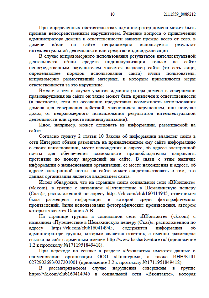 - Необходимо было юридически закрепить, что паблик «ВКонтакте» принадлежит именно ответчику.