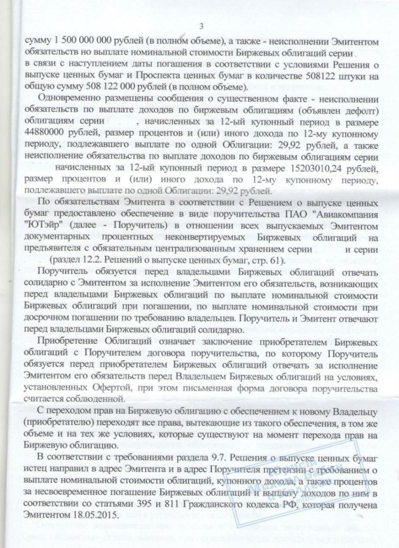 Клиент компании, как и другие владельцы облигаций "ЮТэйр", не смог получить вложенные в облигации средства и дополнительный доход. Защитой его интересов занимался непосредственно руководитель компании.